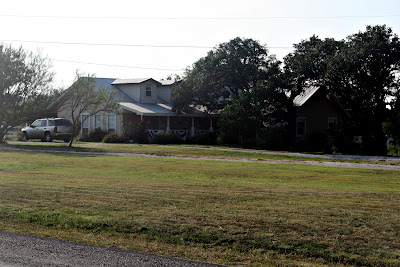 Now I will pan over to the left so you can see the guest house. We have a circle driveway and we made a little parking space for my car right at the end of the porch so I can easily bring groceries into the house. DUH parks in front of the guest house.