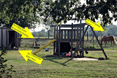 The garden area (we do not have a garden this year) is on the far side of the chicken coop and the chickens have a fenced in yard behind the coop.
