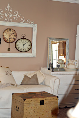 The big frame was over the crib in the nursery, I got it at a flea market several years ago. The clock on the right is the only thing I bought for the room. When I saw it I just had to have it.