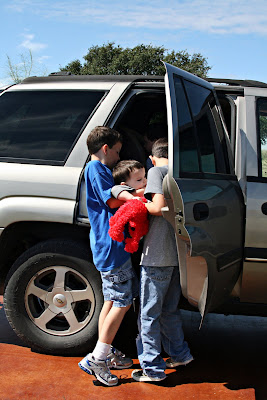 When we were leaving, the boys saw how hard it was for me to get the baby into the car. Remember my hurt back?