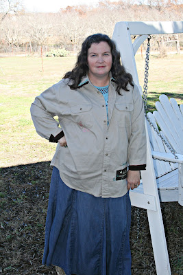 I sewed it to a man’s khaki shirt that I had in my closet and never wore.