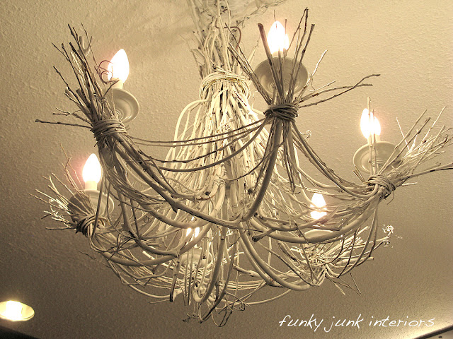 My friend over at Funky Junk Interiors (OK, so she doesn’t actually know we’re friends) made the most gorgeous light fixture.
